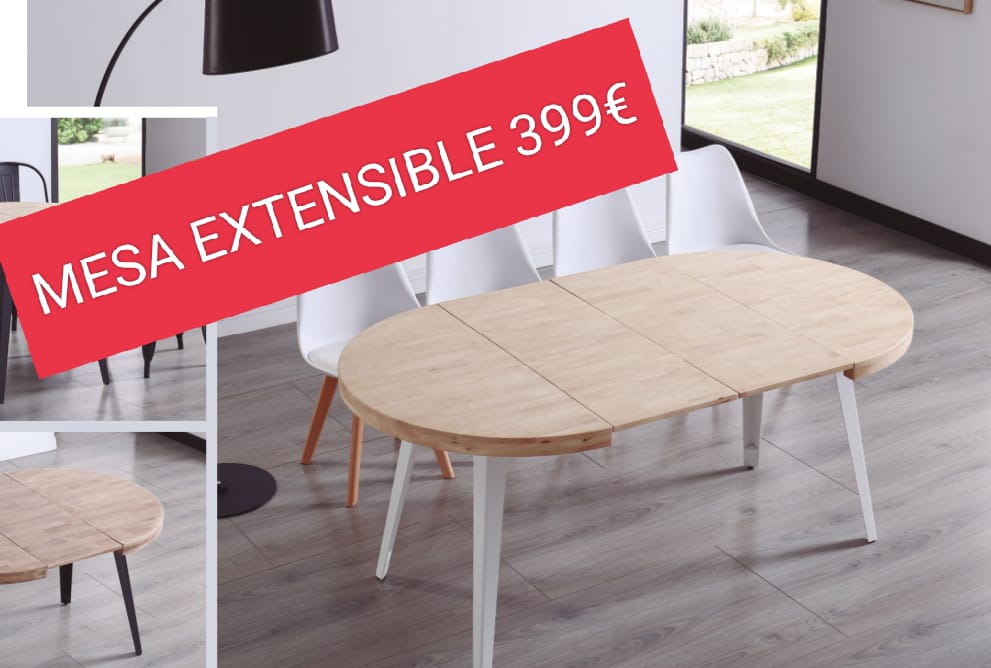 Mesa redonda extensible de 100cmx100cm forja y madera (colores a elegir)